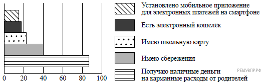 В 2017 г. ВЦИОМ проводил опрос среди российских школьников. Им задавали вопрос: «Располагаете ли Вы карманными деньгами?» (можно было выбрать несколько ответов).