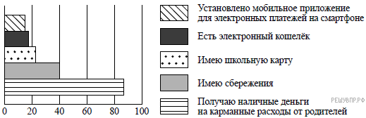 В 2017 г. ВЦИОМ проводил опрос среди российских школьников. Им задавали вопрос: «Располагаете ли Вы карманными деньгами?» (можно было выбрать несколько ответов).